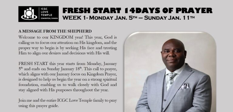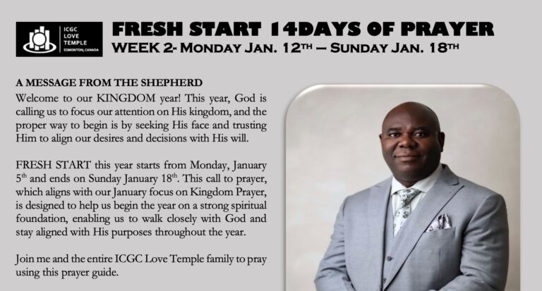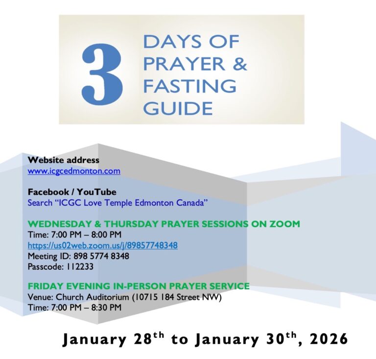 ICGC Love Temple, Edmonton’s End of Month (January, 2026) prayer and fasting has started! Download the guide from here.